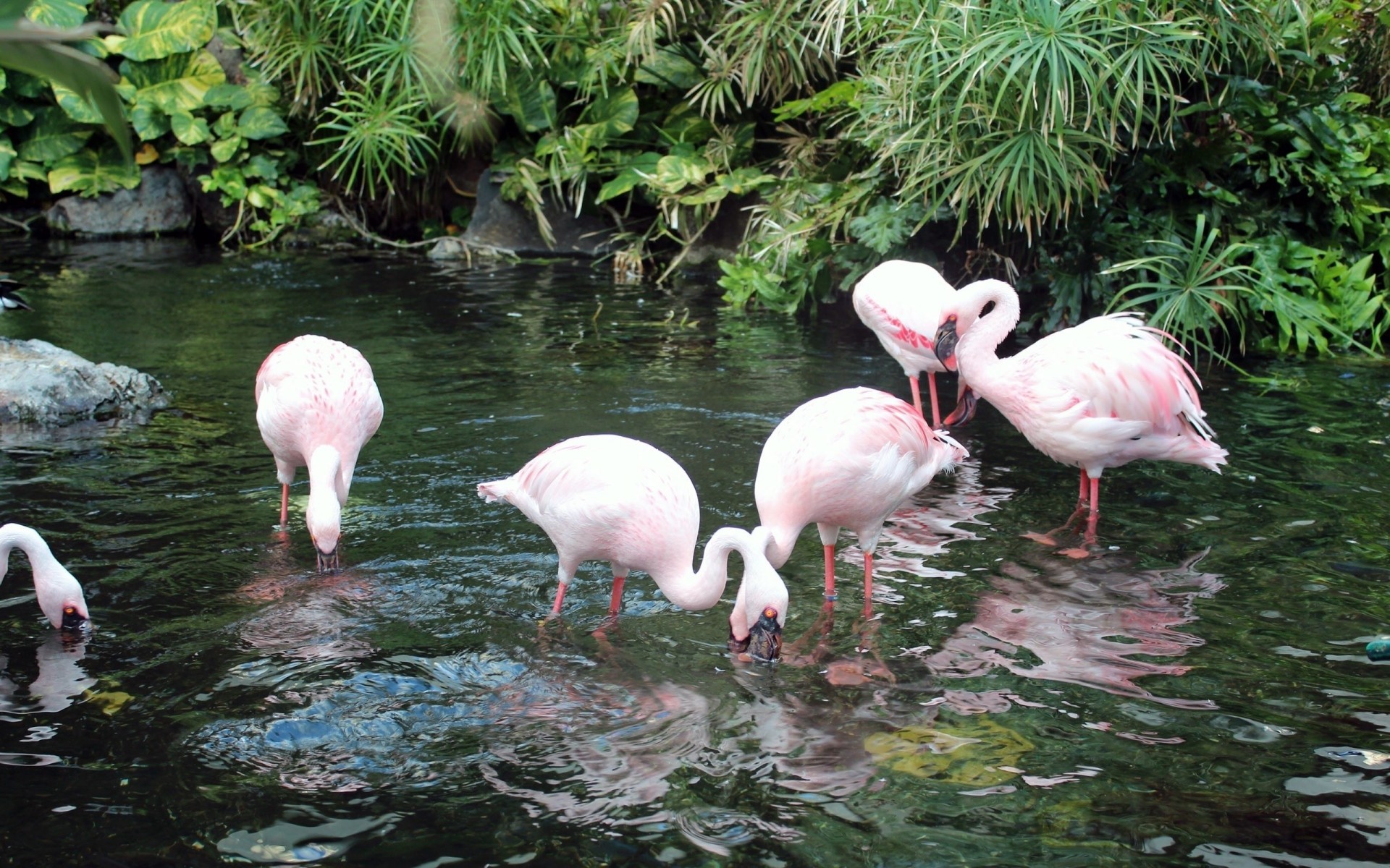 Rosa Flamingo trinkt Wasser aus dem Fluss