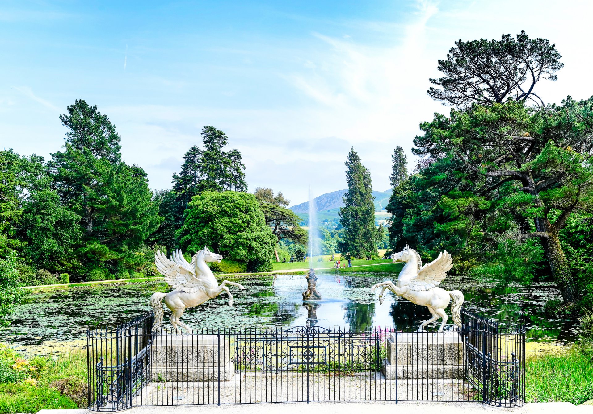 Riesige, verzweigte Bäume, die mit grünem Moos bedeckt sind