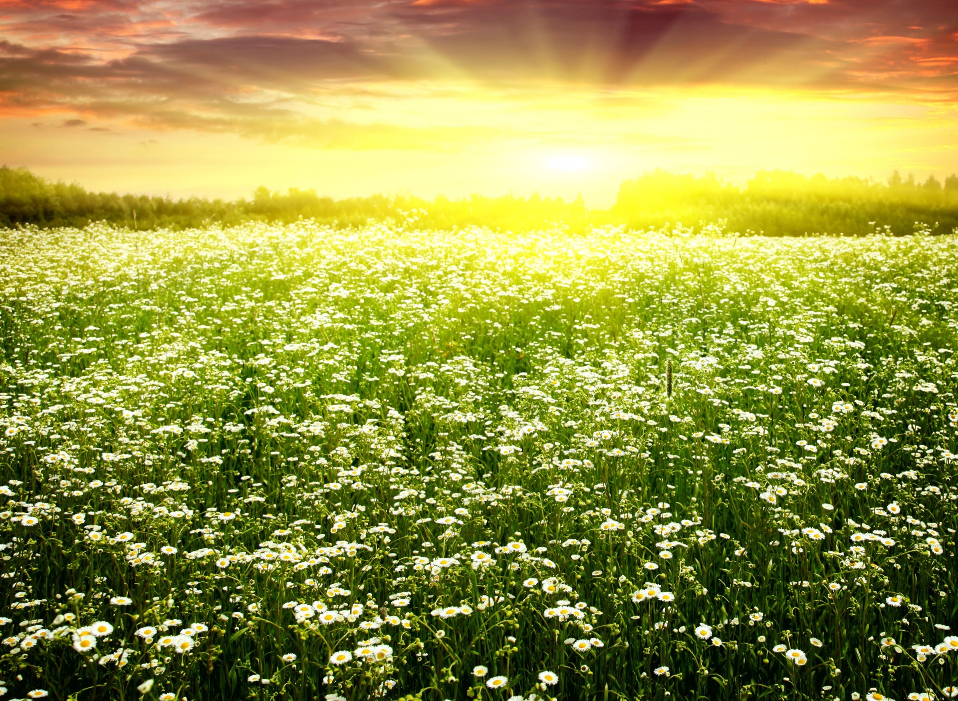 Kamillenfeld an einem sonnigen Tag