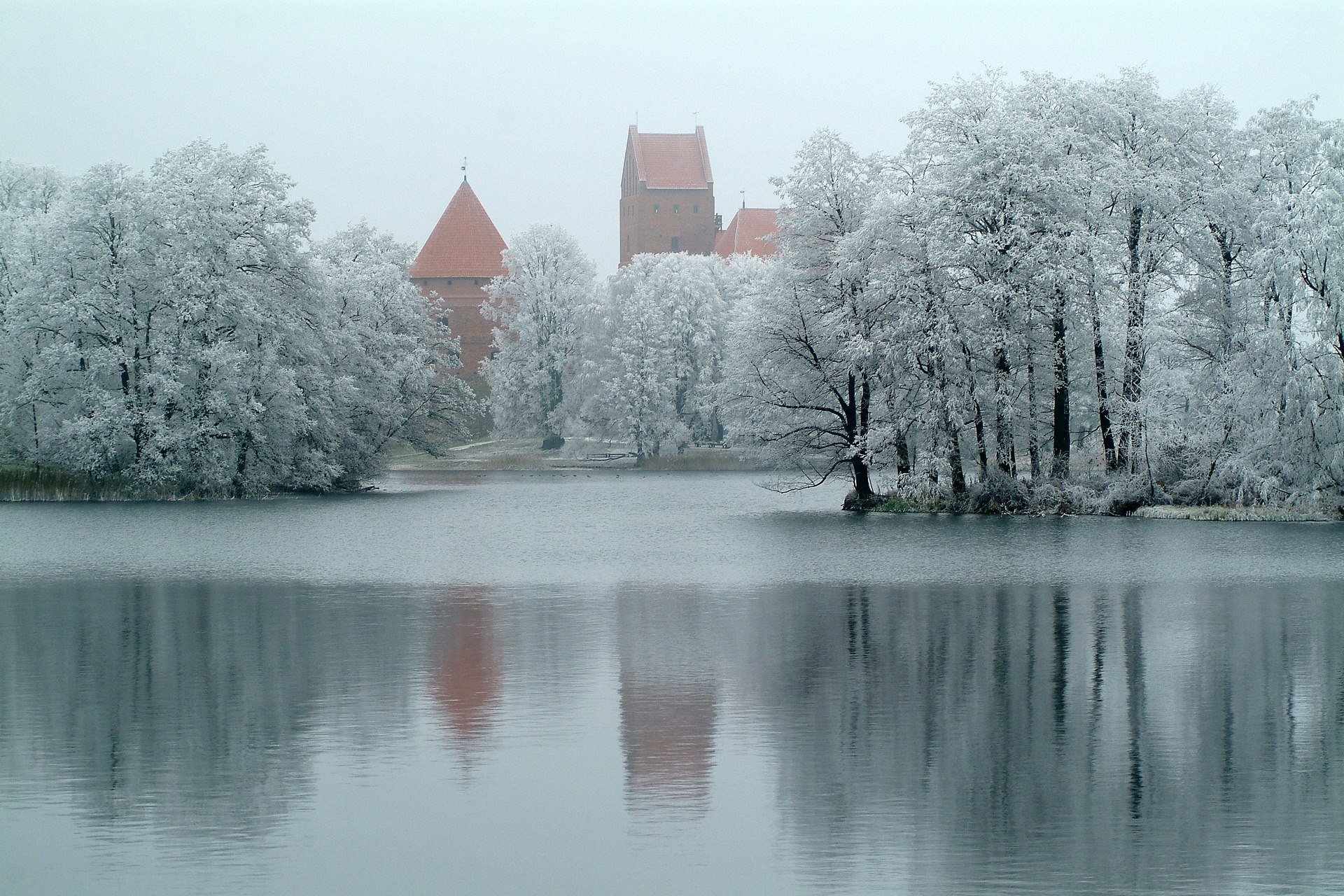 Winter Natur, Thuja-Bäume in einem Waldgebiet