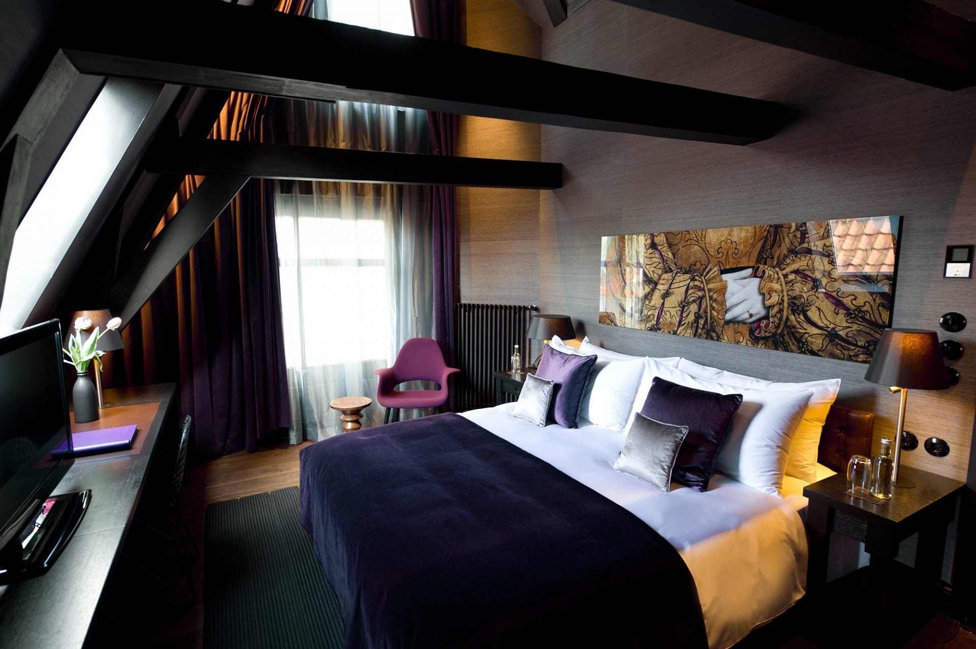 Das schlafzimmer und das bett mit stuhl passen zueinanderDas Schlafzimmer und das Bett mit Stuhl passen zueinander