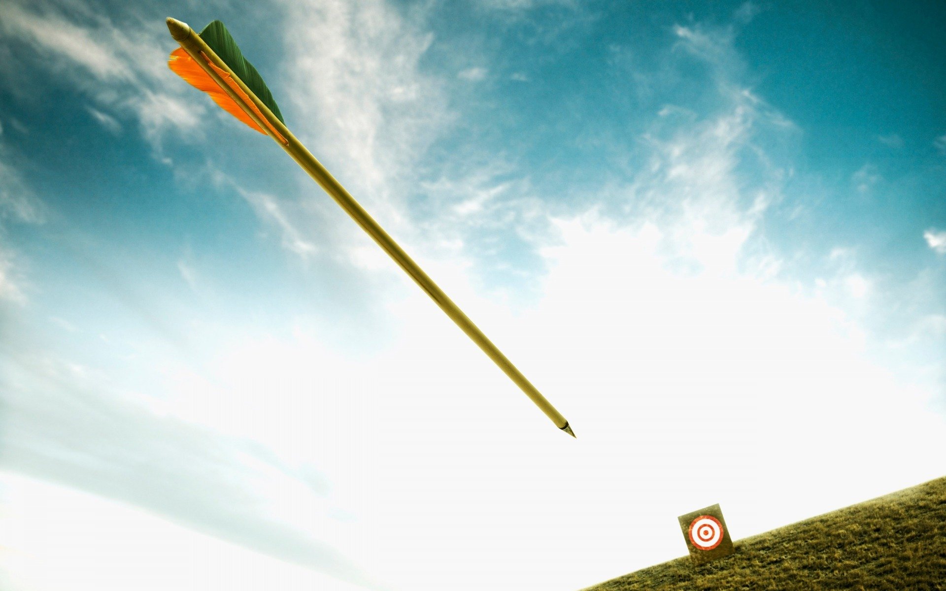 Mädchen mit einem Bogen schießt auf ein Ziel