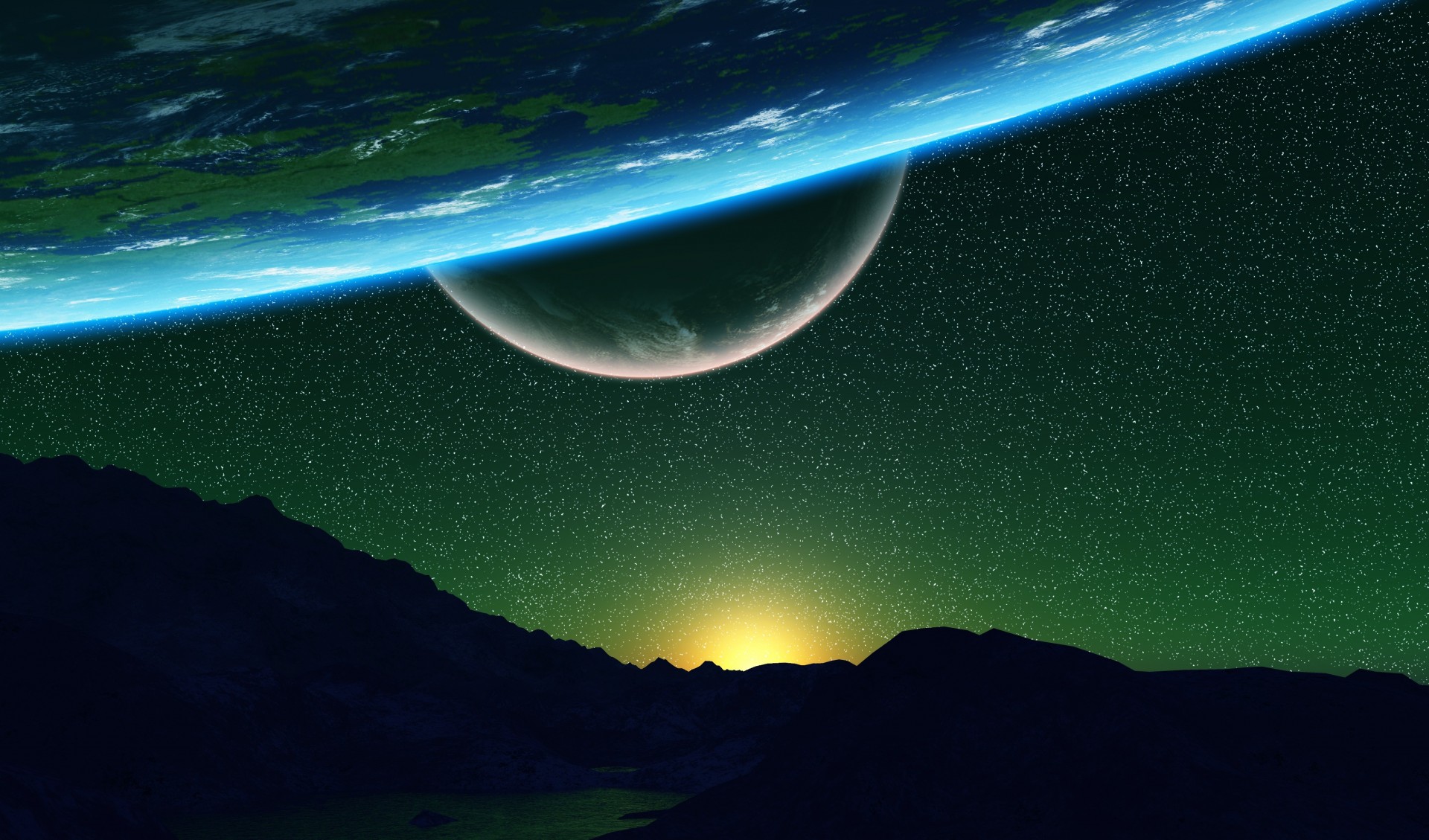 3d-Kunst des Kosmos. Erde und Mond auf Himmelshintergrund