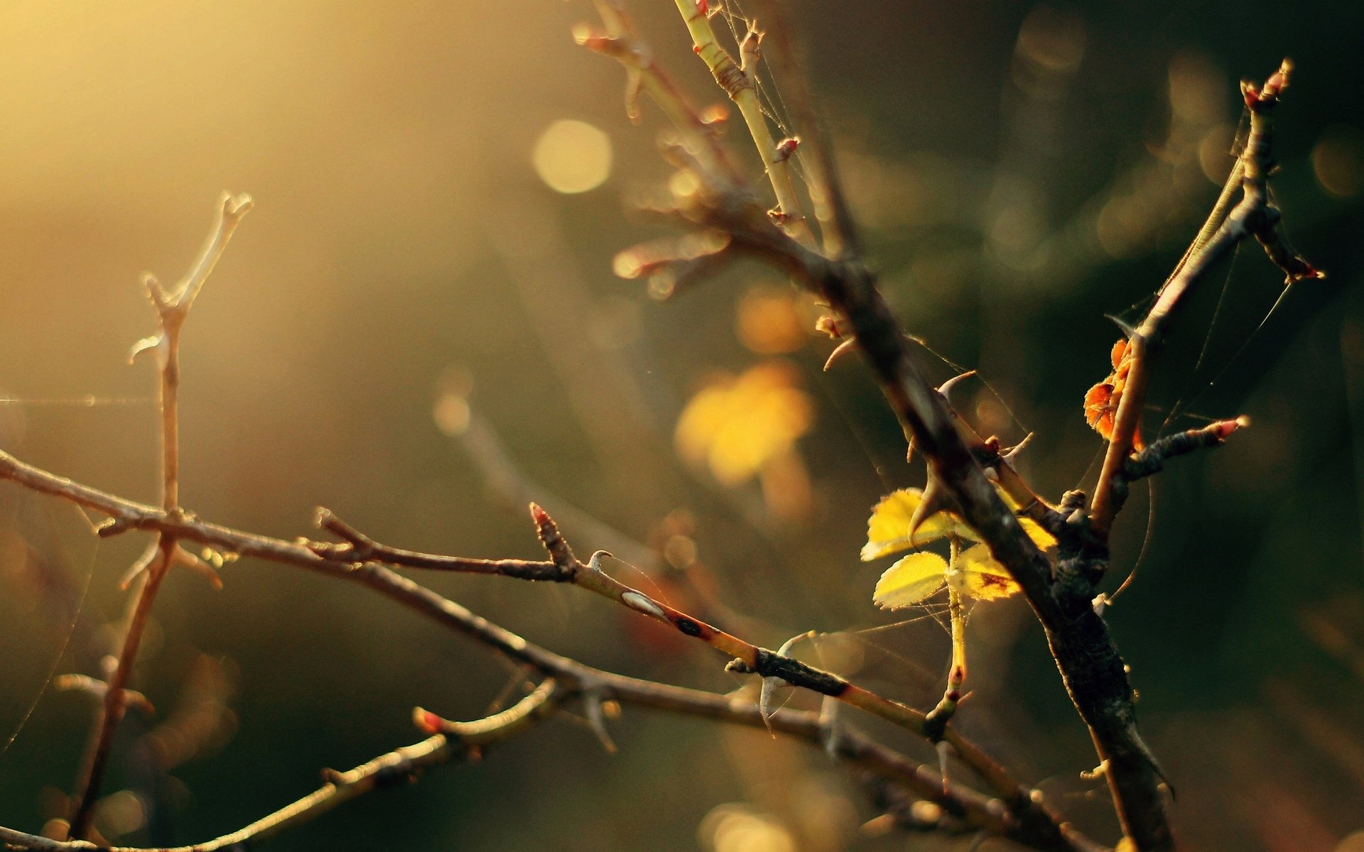 Zweige eines Baumes im Spinnennetz im Sonnenlicht