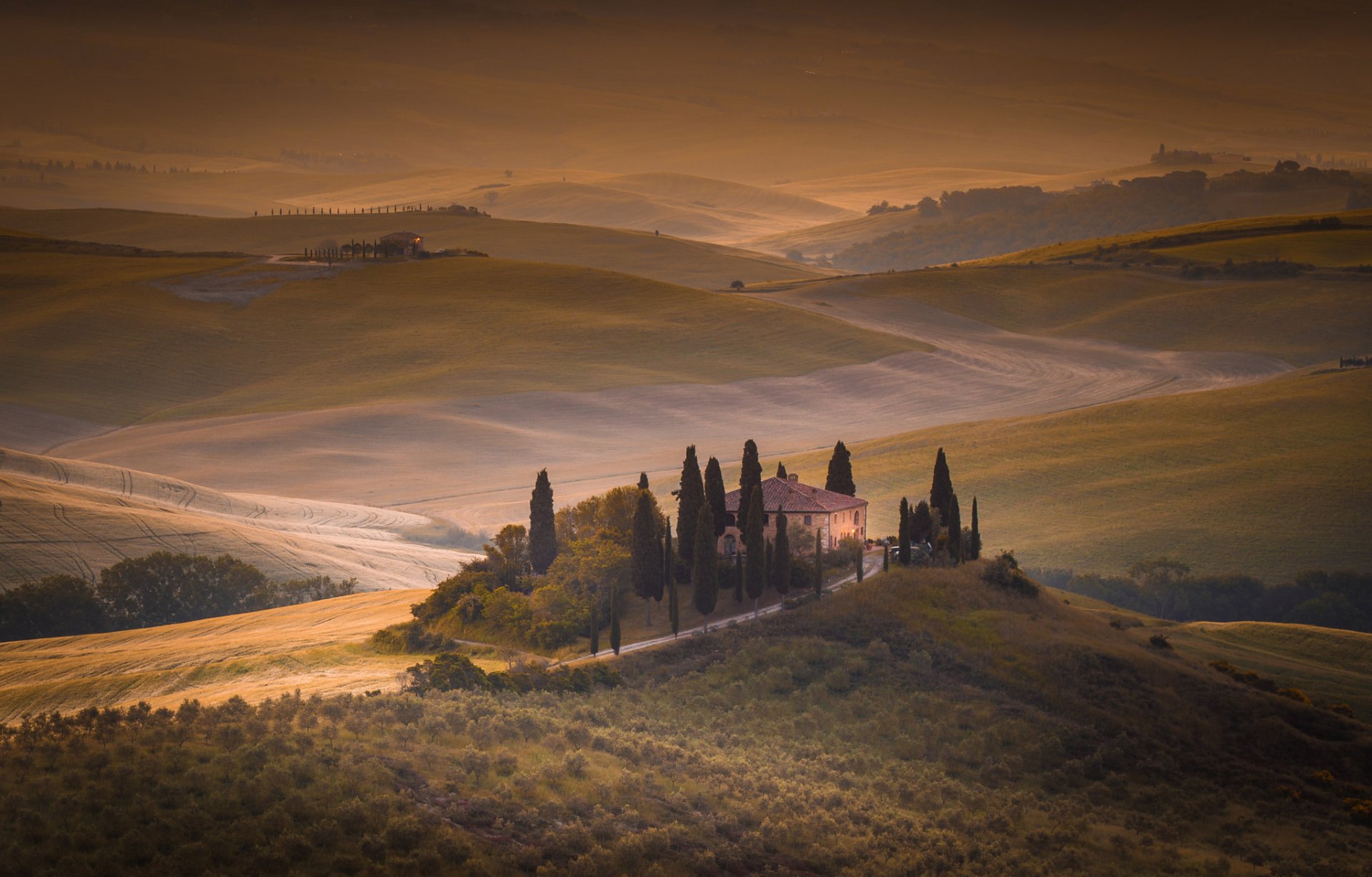Haus und feld vor dem hintergrund des nachthimmels und des hellen mondesHaus und Feld vor dem Hintergrund des Nachthimmels und des hellen Mondes