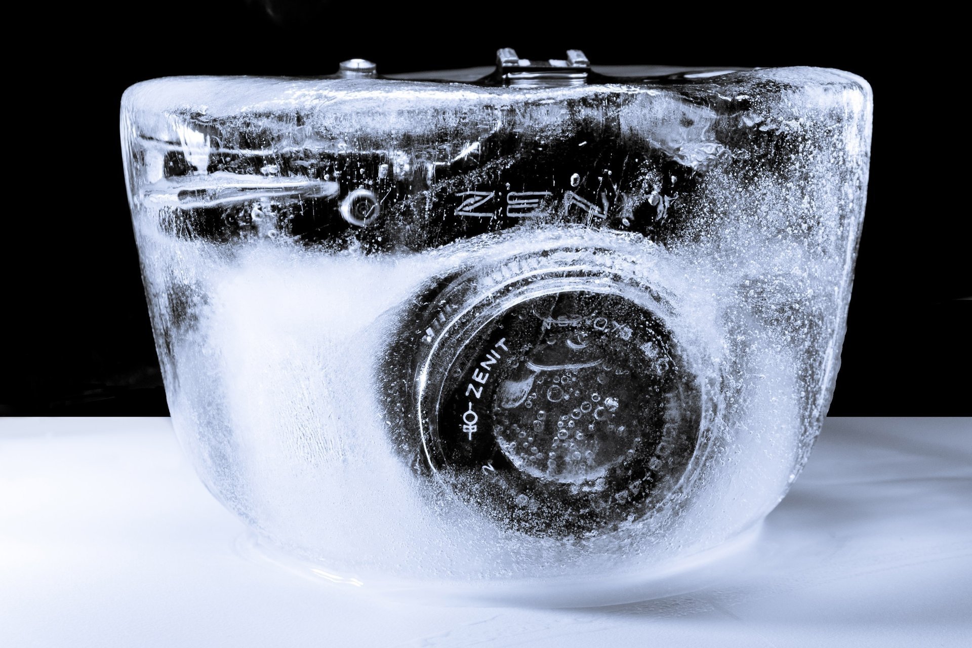 Kamera-Zenit im Eis auf schwarzem Hintergrund - wallpaper für das Telefon