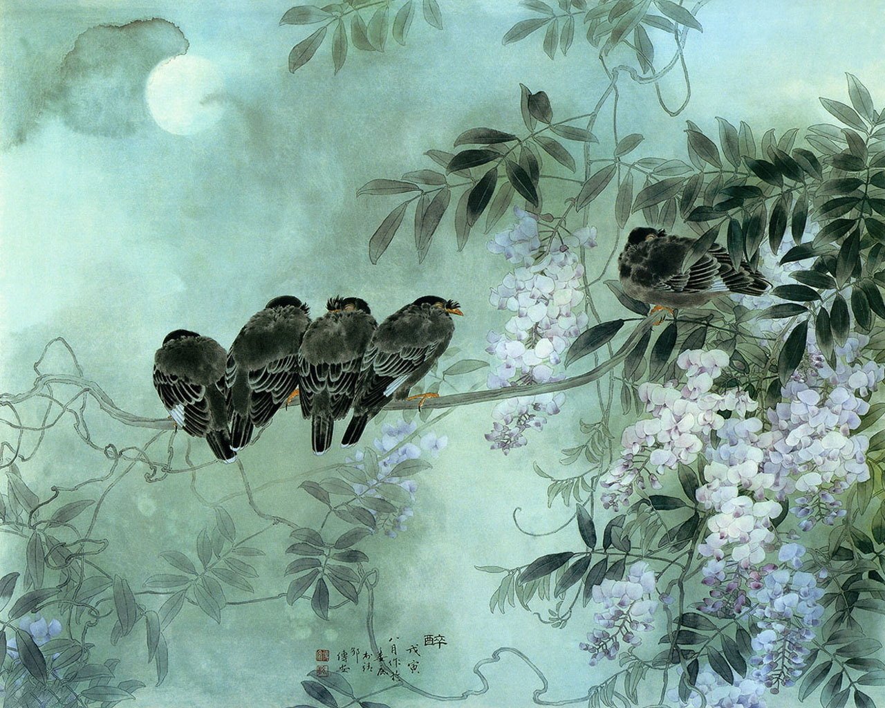 Kennungen:nacht, mond, blumen, frühling, vögel, schlafen, zweig