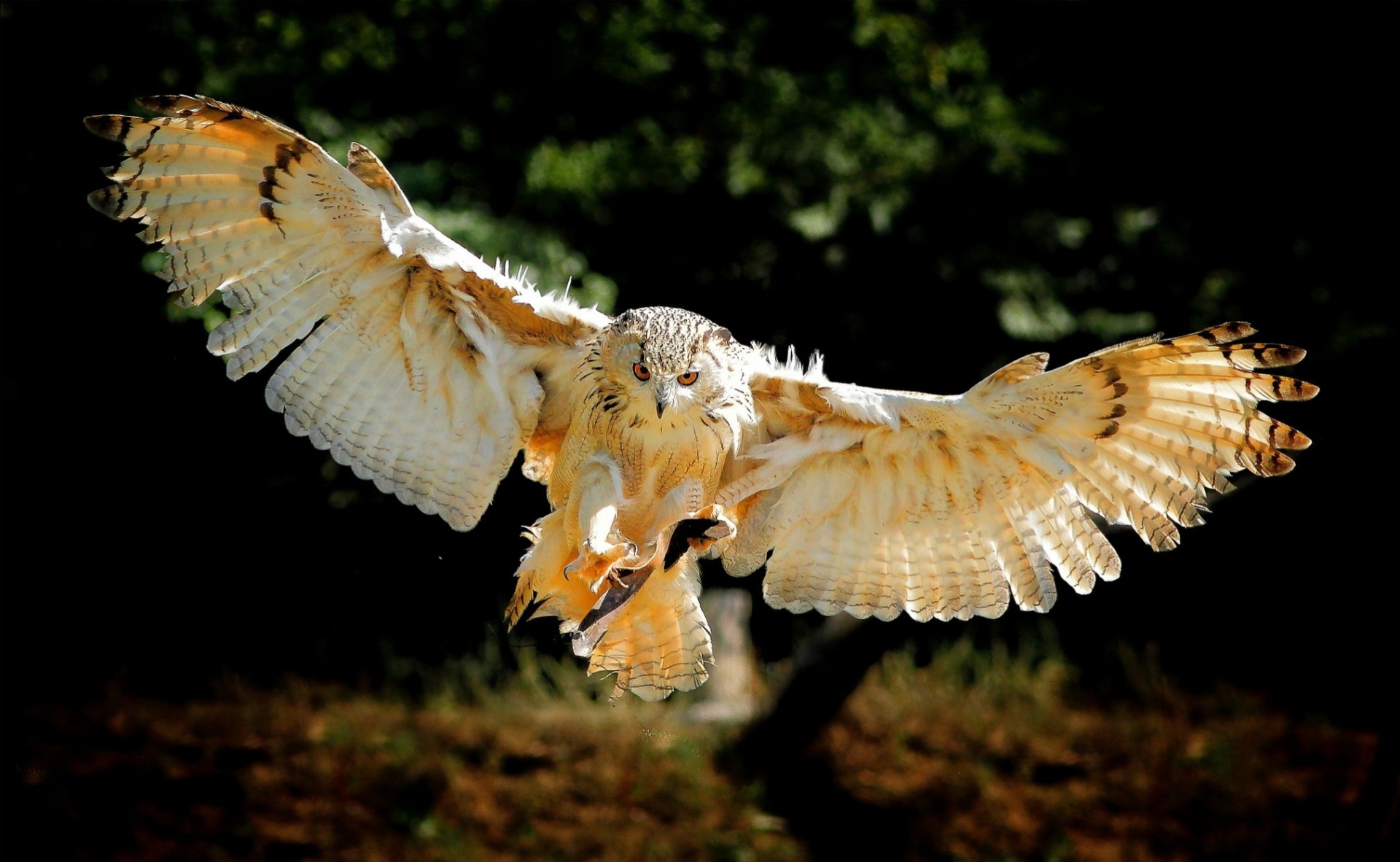 Fliegende Eule mit ausgestreckten Flügeln - wallpaper für das Telefon