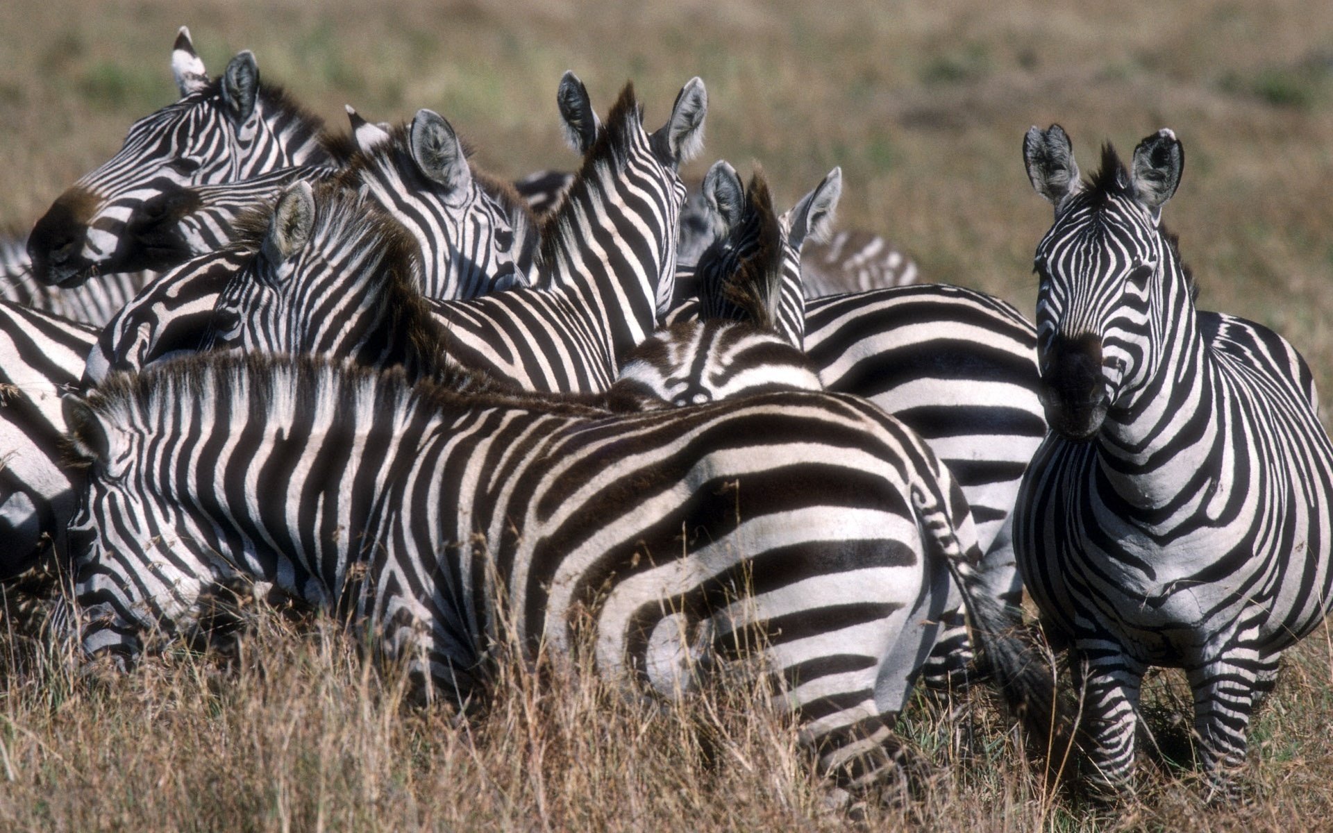 Gestreifte Zebras versteckten sich im Gras - wallpaper für das Telefon