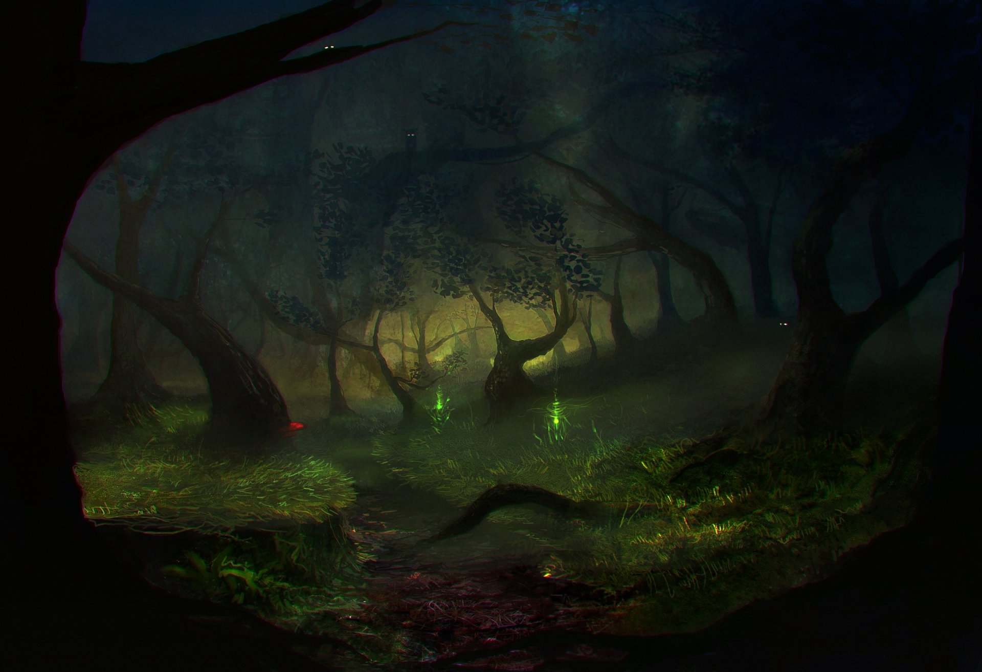 Kennungen:kunst, gezeichnete landschaft, nacht, wald, bäume, gras