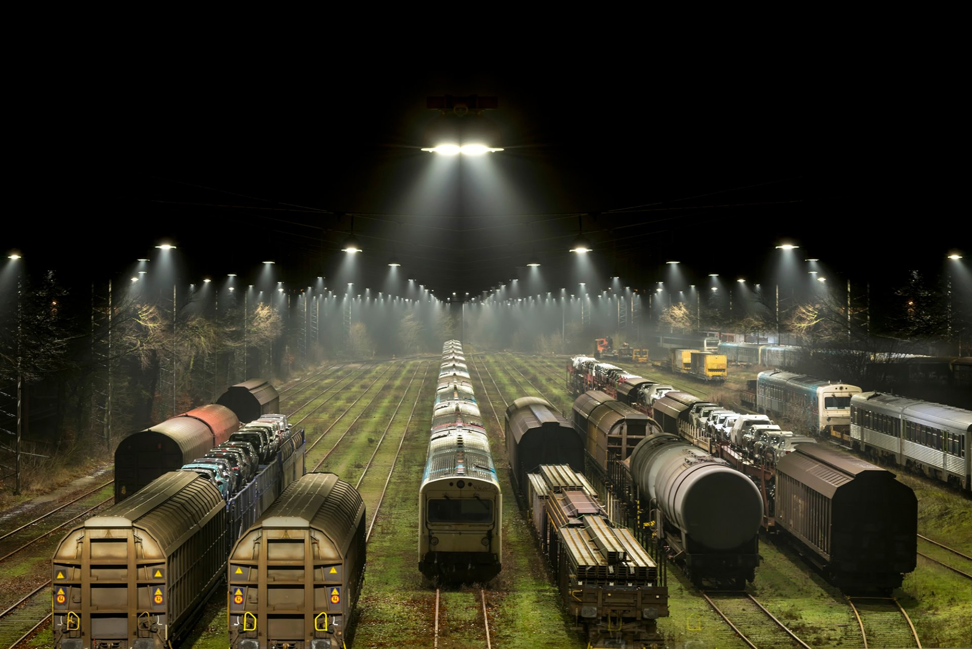Dunkler Bahnhof mit Vogelsang nachts - desktop-Hintergrund