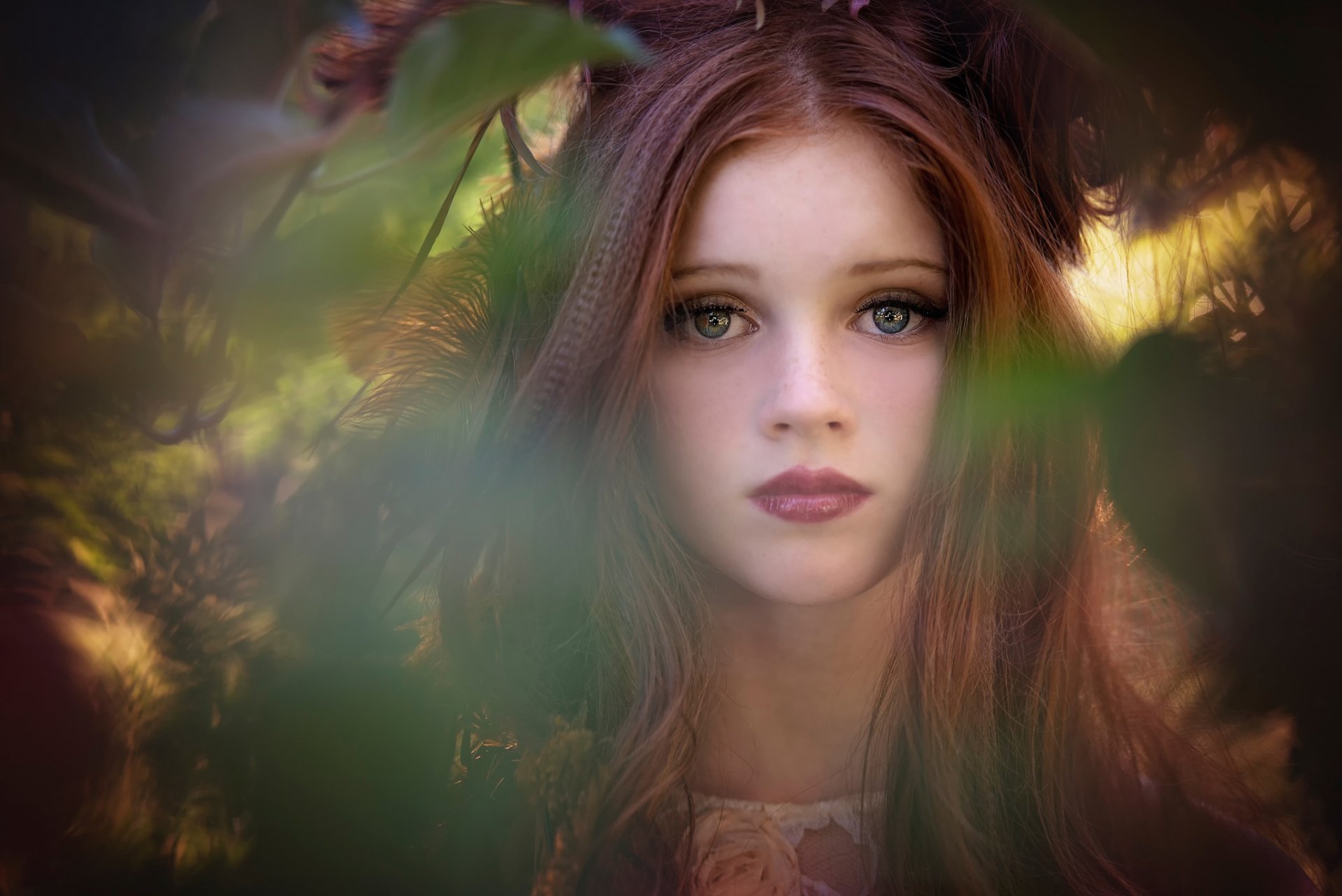 Foto eines langhaarigen Mädchens vor dem Hintergrund einer Herbstpore - desktop-Hintergrund