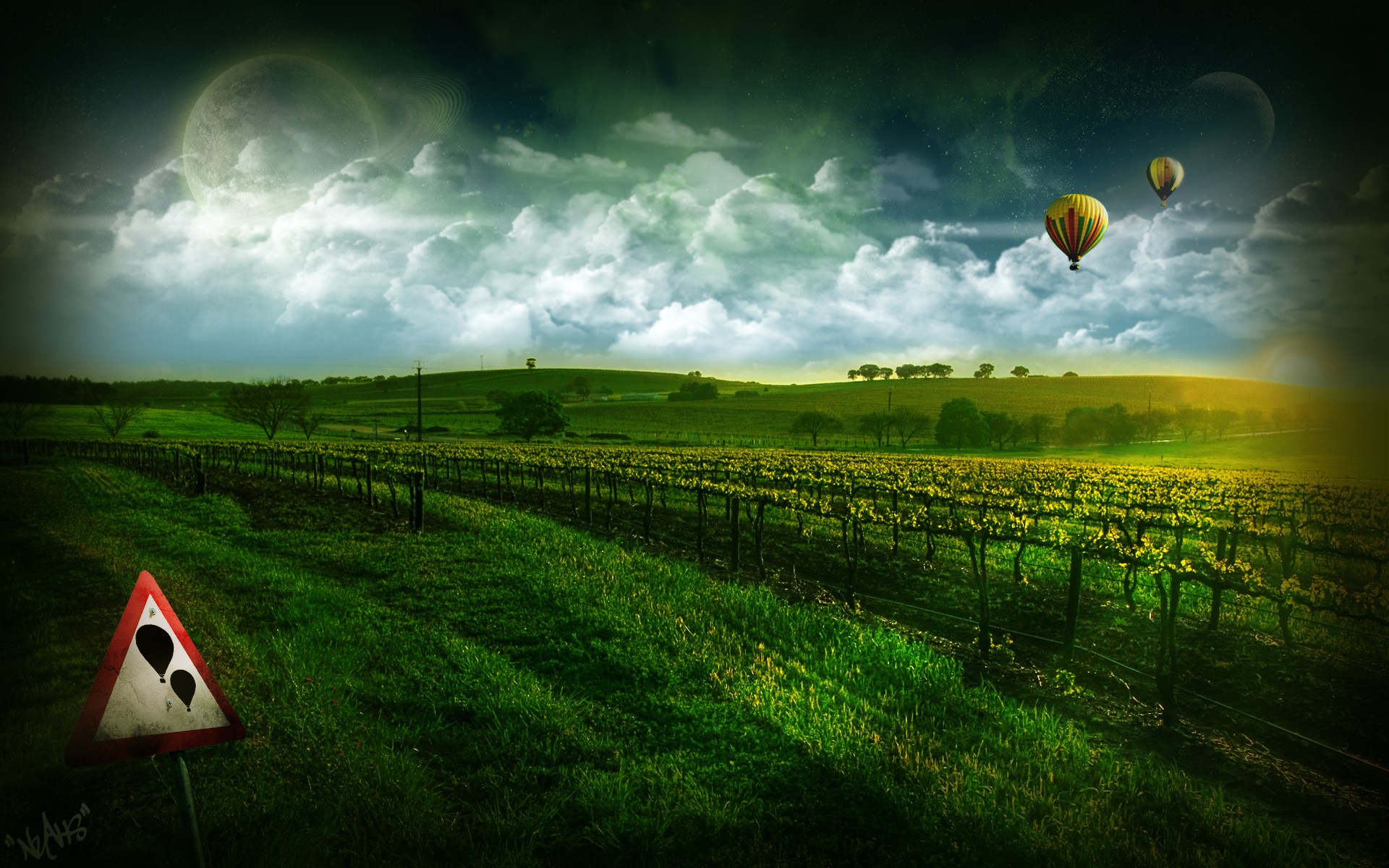 Kennungen:ballons, wolken, gras