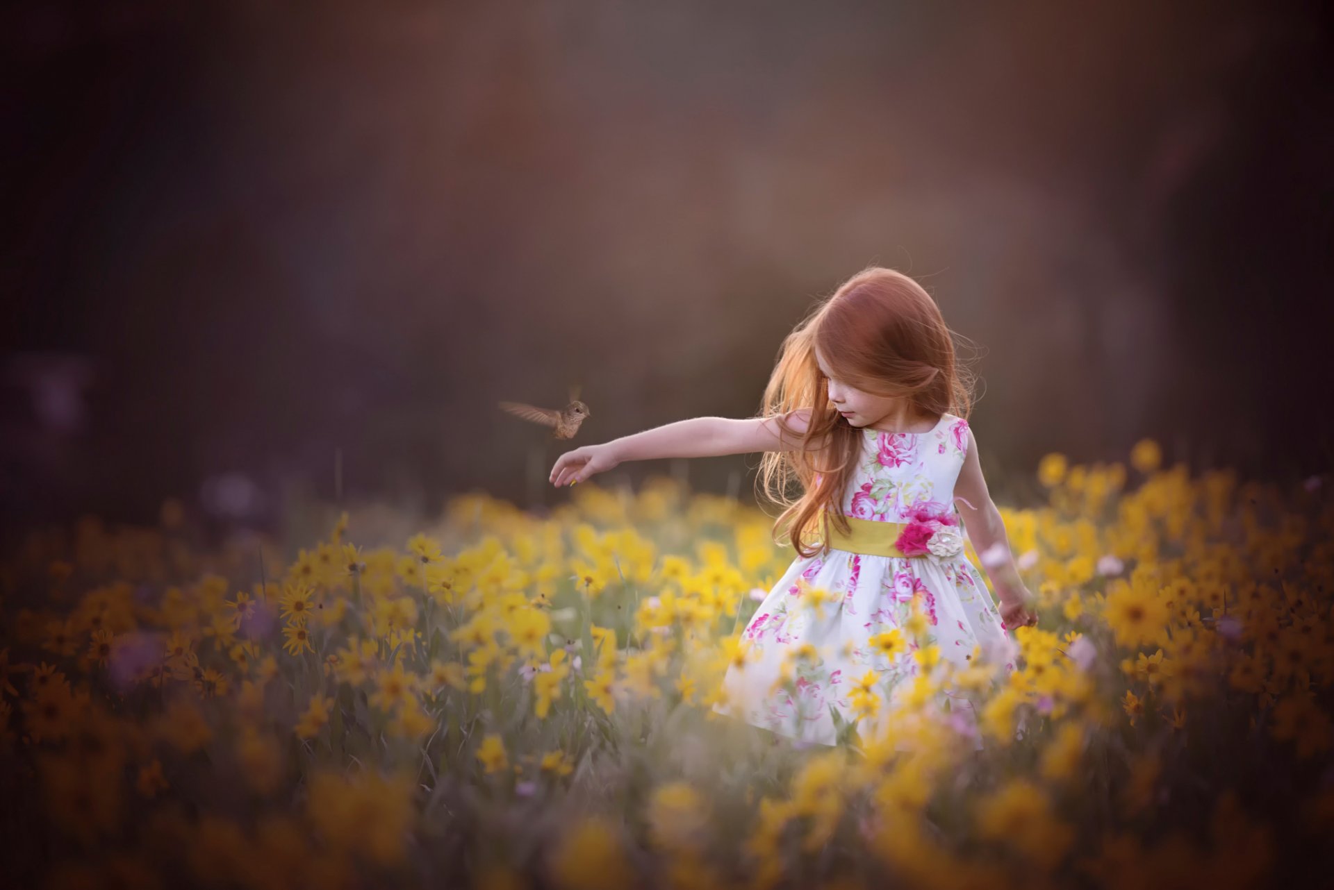 Mädchen in einem blühenden Sommerfeld - desktop-Hintergrund