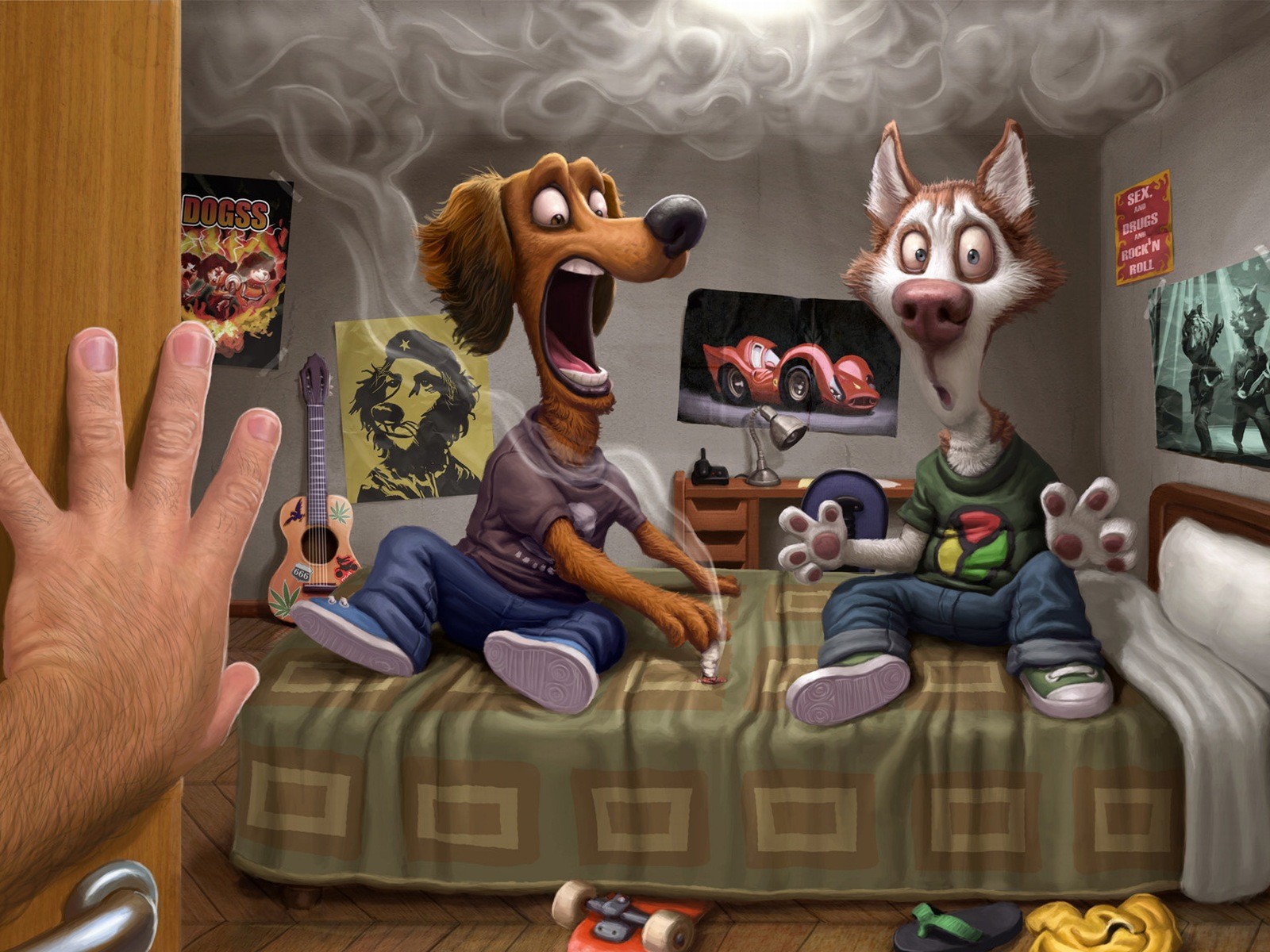 Ein rahmen aus einem cartoon über eine katze und einen hund