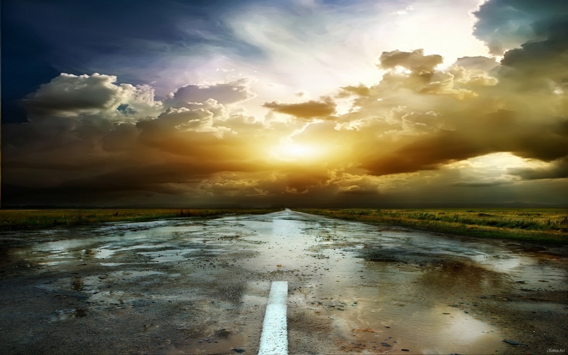 Straße und Horizont auf Sonnenuntergang Hintergrund - desktop-Hintergrund