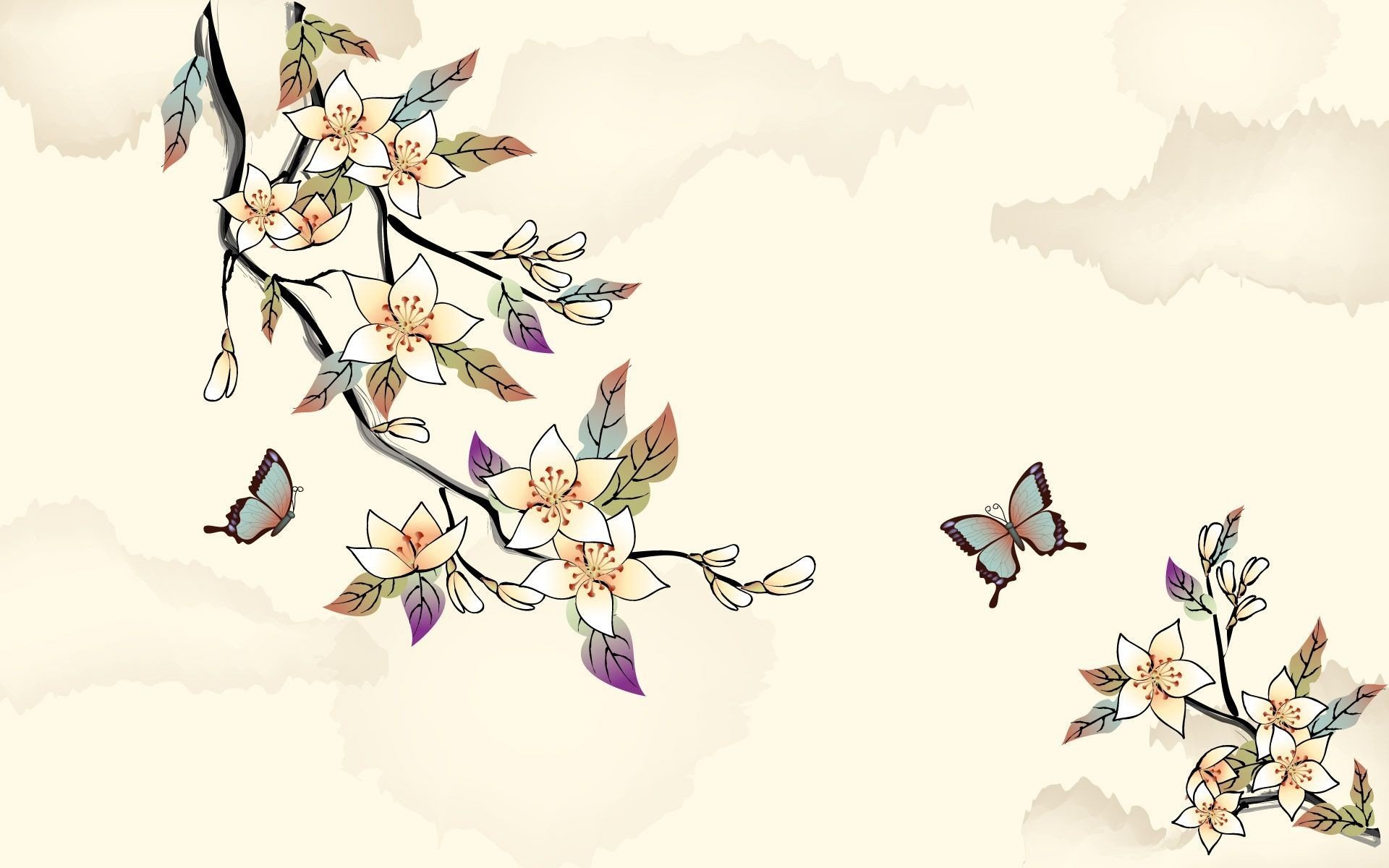 Kunstzeichnung Japan Schmetterlinge und Blumen - wallpaper für das Telefon