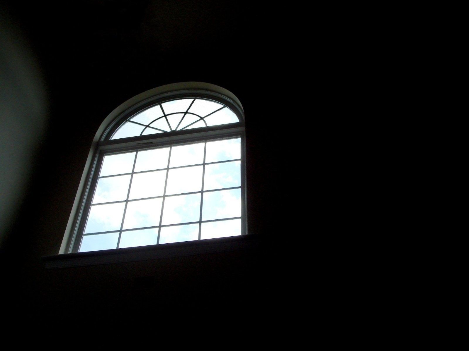 Hohes halbrundes Fenster, das die Dunkelheit schneidet