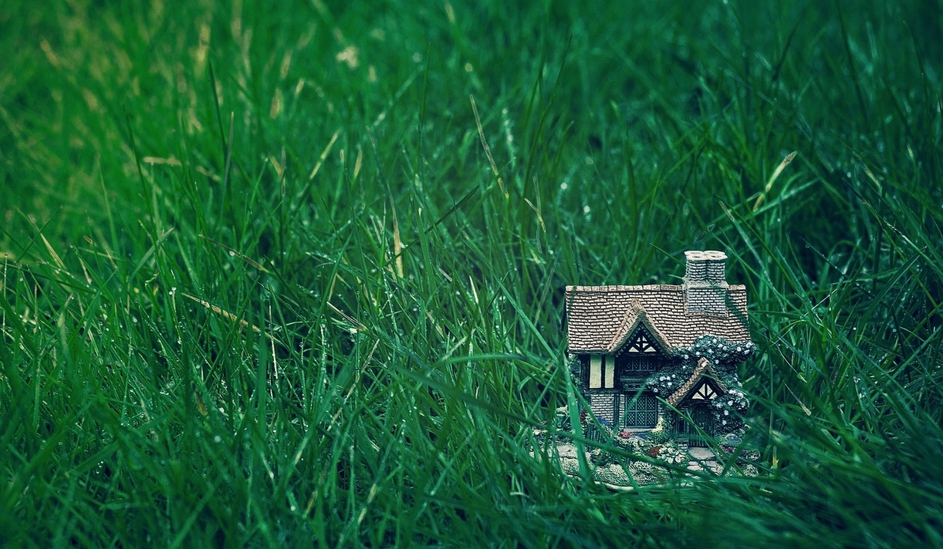 Spielzeughaus auf grünem Gras - wallpaper für das Telefon