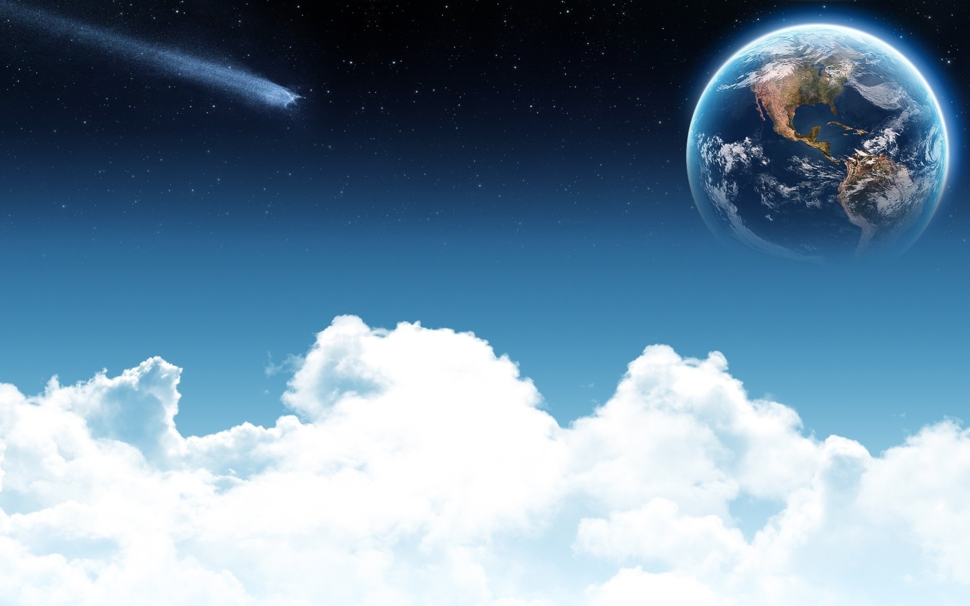 Kunstbild des Planeten Erde unter weißen Wolken - desktop-Hintergrund