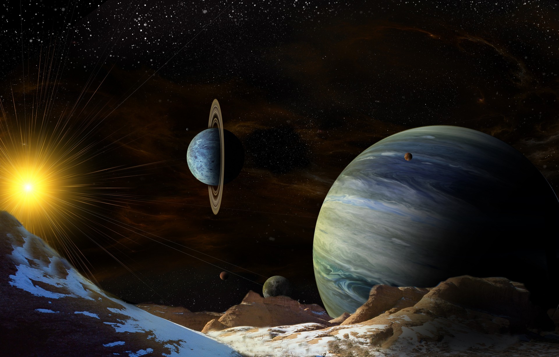 Weltraumart mit Planeten und Sonne - desktop-Hintergrund